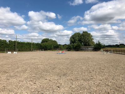 A fenced sand lunging pen. Great for horses to have a run or stretch before being exercised.